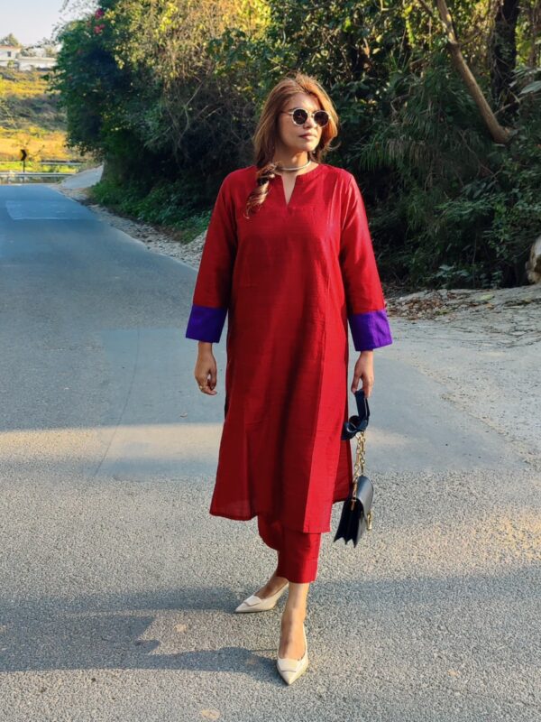 - Relaxed-fit kurta paired with straight-fit pants for effortless comfort and style.