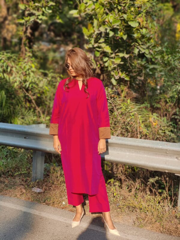 - Relaxed-fit kurta paired with straight-fit pants for effortless comfort and style.