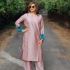 Paired with this is a matching set of straight-fit pants featuring two deep pockets to keep your essentials secure. The pants offer a comfortable yet elegant fit—not too tight, not too loose—and are designed with an elasticated waist band with a string to adjust to waist size for all-day comfort.