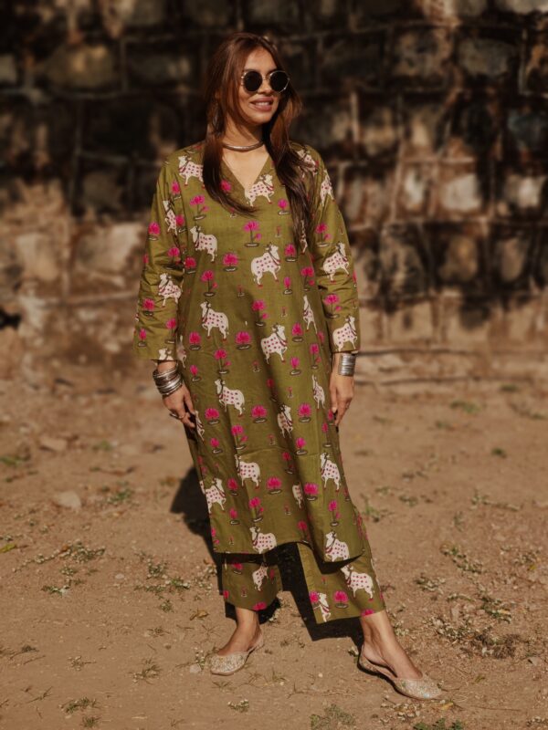 हरा Pichwai Cotton Co-ord Set